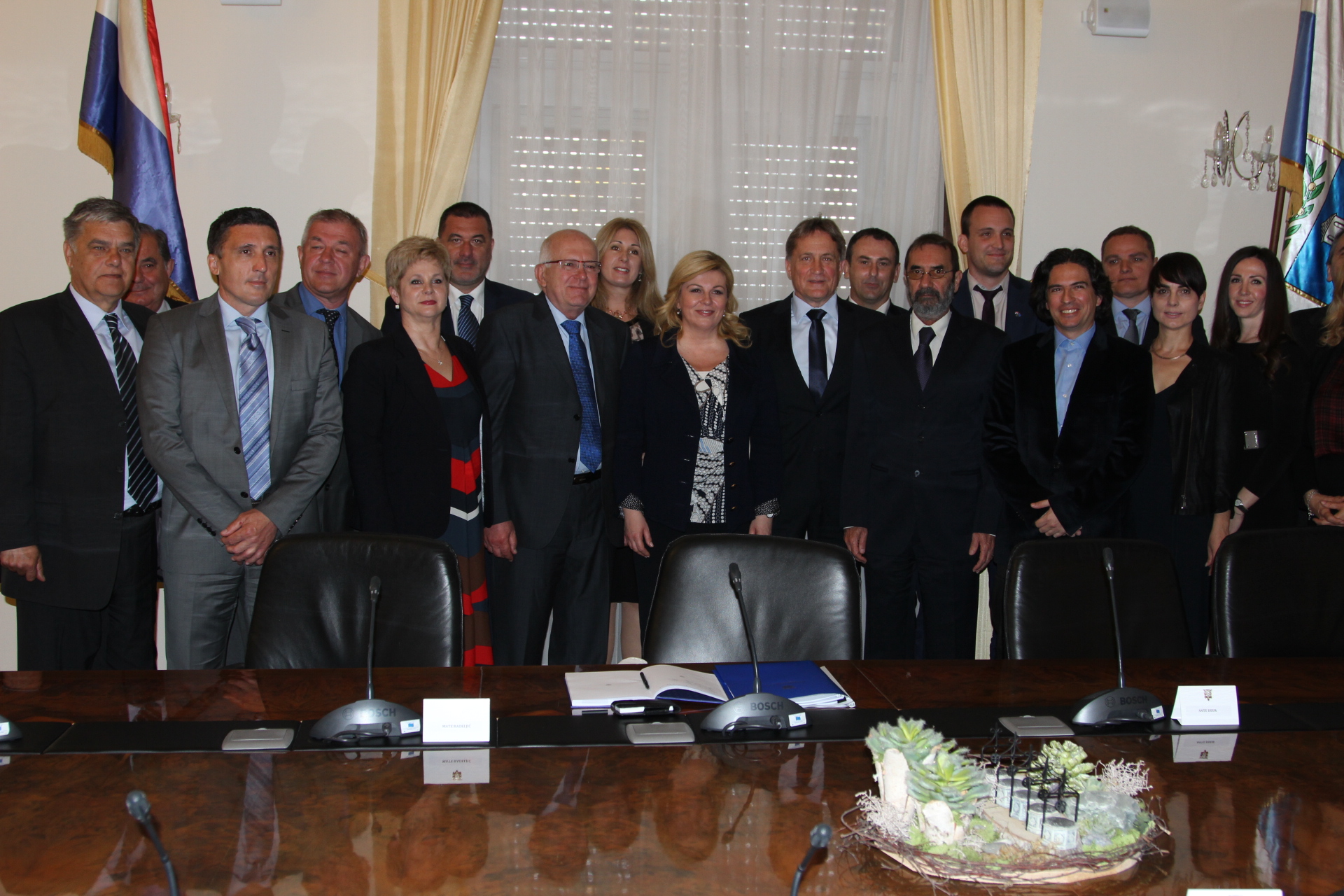 Nakon otvaranja ureda, gradonačelnik Kalmeta sa zamjenicima, predsjednikom Gradskog vijeća i resornim pročelnicima, održao je službeni sastanak s predsjednicom RH na kojem je govorio o razvojnoj strategiji grada Zadra te o specifičnostima otoka u nadležnosti grada.