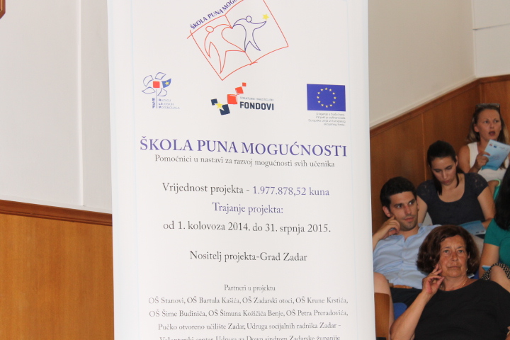 Voditeljica projekta Ivana Perić Zrilić iz UO za odgoj i školstvo rezimirala je tijek provedbe projekta, naglasivši kako se on zapravo provodi od 2010. godine proračunskim sredstvima, a samo je u ovoj posljednjoj školskoj godini sufinanciran sredstvima EU i Grada Zadra. Ostvareni su ciljevi projekta, što znači da je 43 učenika dobilo mogućnost uključivanja u redovni školski sustav kroz podršku u obliku uvođenja pomoćnika u nastavi, educirane su i zaposlene 43 osobe kao pomoćnici u nastavi, te se kroz niz aktivnosti senzibilizirala javnost  o pravima učenika s teškoćama.