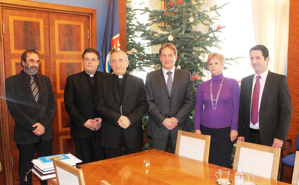 U pratnji nadbiskupa stigao je i don Dario Tičić, a susretu su nazočili i zamjenik Ivica Vlakić, kao i pročelnica UO za financije Grozdana Perić te pročelnik UO za kulturu i šport Radovan Dunatov.