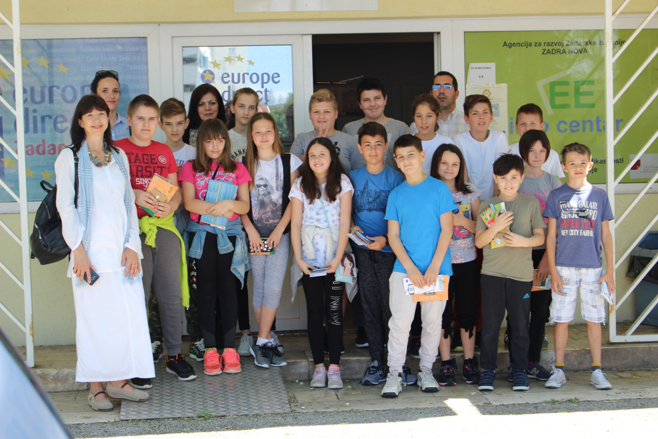 Danas, 10. svibnja u 10.00 sati, učenici 5. A razreda O.Š. Petra Preradovića sa svojim nastavnicama Anitom Miletić i Josipom Milardović, posjetili su ured EDIC-a na Danima otvorenih vrata i proveli zanimljiv sat informirajući se o Europskoj uniji. Na ovaj način projekt EDIC Zadar priključio se „Danima otvorenih vrata EU projekata“ koji provodi Ministarstvo regionalnoga razvoja i fondova Europske unije.