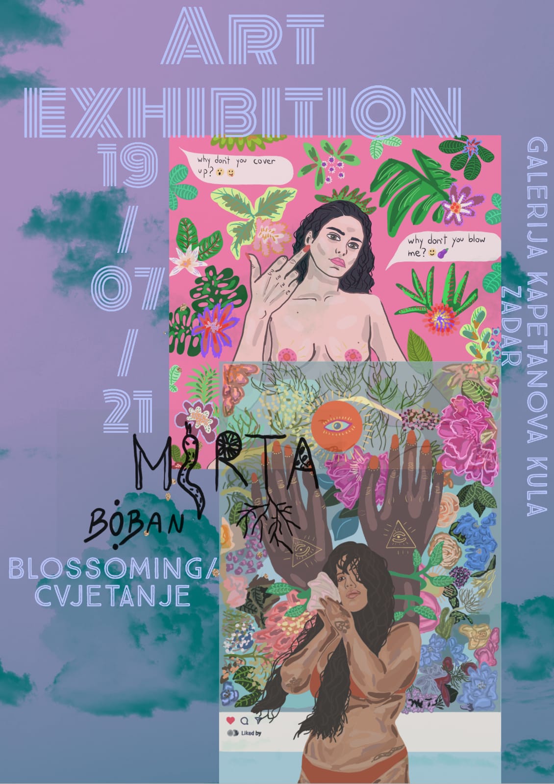 Otvorenje izložbe slika autorice Mirte Boban održat će se u ponedjeljak, 19. srpnja s početkom u 20 sati u galeriji Kapetanova kula (Trg pet bunara, Zadar).