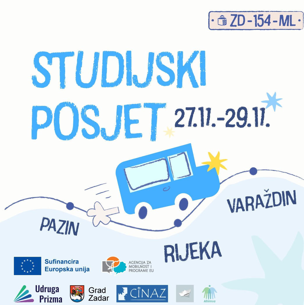 Studijski posjet pod nazivom Primjeri dobre prakse održava se u okviru projekta ZD-154-ML čiji je cilj aktivno uključivanje mladih s područja Grada Zadra u dijalog s donositeljima odluka, procese donošenja i praćenja politika koje se tiču mladih kroz inovativne i "youth-friendly" načine sudjelovanja mladih. Projekt se provodi u partnerstvu Udruge Prizma, Grada Zadra, Udruge mladih Ahimsa, Udruge Cinaz i Udruge Trećeprostor i sufinanciran je sredstvima Europske unije.