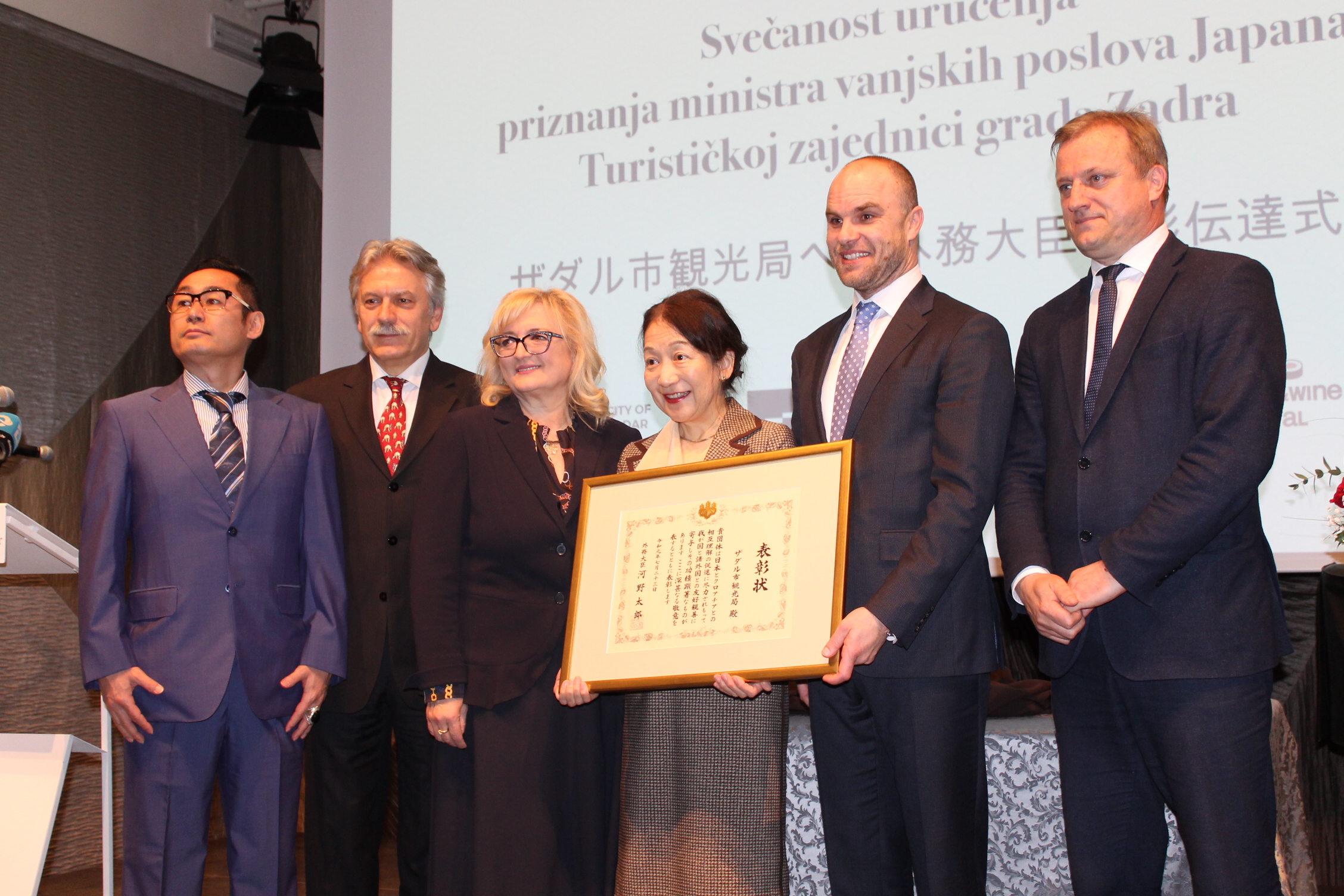 Priznanje je direktoru Turističke zajednice grada Zadra Mariju Paleki uručila Nj.E. gđa. Misako Kaji, veleposlanica Japana.