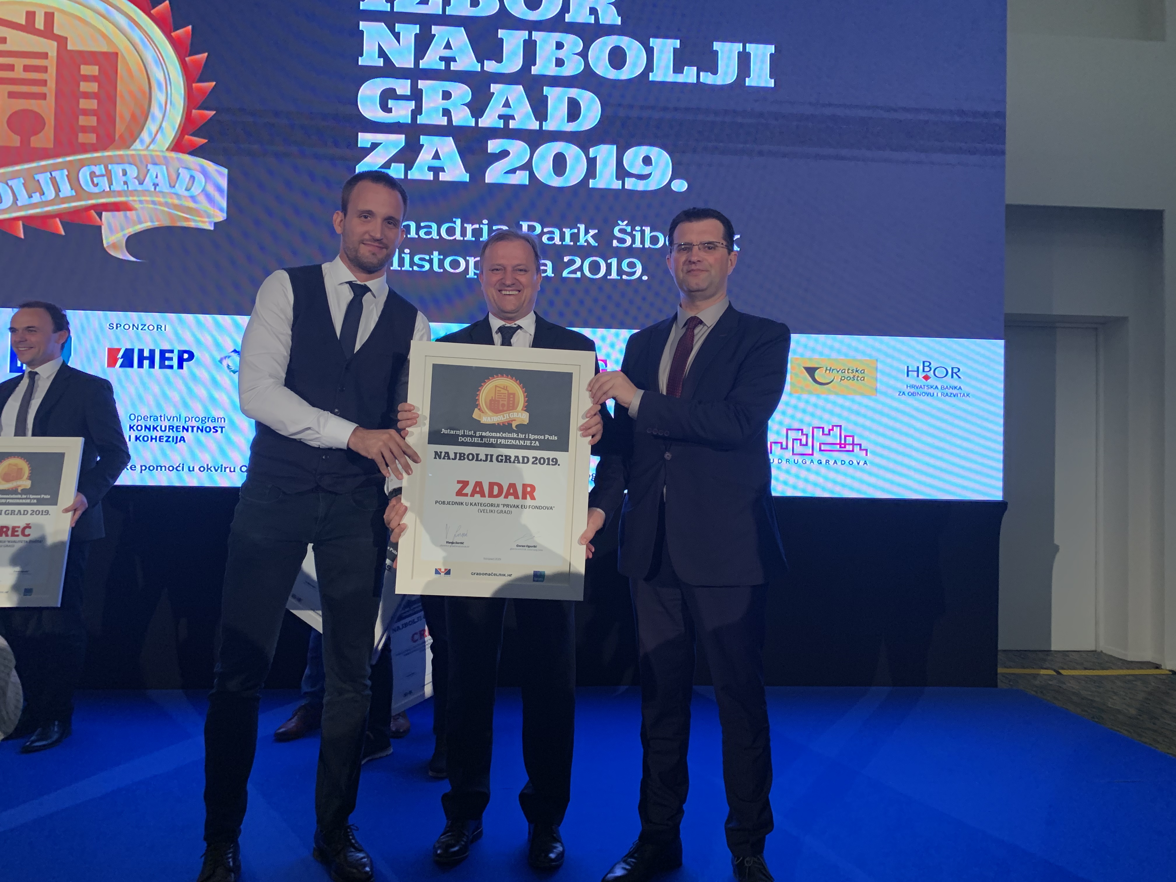Grad Zadar proglašen je danas najboljim u kategoriji povlačenja sredstava iz EU fondova prema izboru za 'Najbolji grad', kojeg Jutarnji list organizira u suradnji s gradonacelnik.hr i agencijom Ipsos. Nagradu su primili gradonačelnik Branko Dukić, zamjenik gradonačelnika Ante Babić te pročelnik Upravnog odjela za EU fondove Šime Erlić na svečanoj dodjeli održanoj u Šibeniku. Uz pobjednički Zadar, u finalu su se našli još Križevci, Ludbreg, Karlovac te Zagreb, a Zadar se i prošle godine našao među finalistima ovog natječaja. Gradonačelniku Dukiću nagradu je uručila državna tajnica u Ministarstvu regionalnog razvoja, Nikolina Klaić.